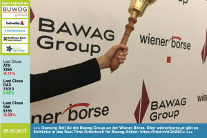 25.10.: Opening Bell für die Bawag Group an der Wiener Börse. Über wienerborse.at gibt es Einblicke in das Real-Time-Orderbuch für Bawag-Aktien. Direktlink: lnkd.in dGK88Cu http: www.boerse-social.com goboersewien www.facebook.com groups GeldanlageNetwork 24.10.: Raphaela Pruckner läutet die Opening Bell für Dienstag und Hot Yoga Vienna. Seit September betreibt die Yoga-Lehrerin ein weiteres Studio am Lugeck in der Innenstadt. Foto: Florian Albert http: www.hotyogavienna.at www.facebook.com groups Sportsblogged 23.10.: Karin Nistler läutet die Opening Bell für Montag. Als PR Coordinator der Reed Messe Wien war sie in der Vorwoche für eine erfolgreiche Gewinn-Messe mitverantwortlich. Bilder unter http: photaq.com page index... » Weiterlesen