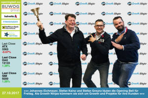 30.10.: Alfred Reisenberger und Lukas Stipkovich läuten die Opening Bell für Montag. Am 7.11. werden sie ihren Sigma Alfa European Opportunities Fonds bei der Börse Social Network Roadshow #74 vorstellen http: sigma-investment.at http: www.boerse-social.com roadshow http: www.boerse-social.com goboersewien www.facebook.com groups GeldanlageNetwork 27.10.: Johannes Eichmayer , Stefan Kainz und Stefan Greunz läuten die Opening Bell für Freitag. Als Growth Ninjas kümmern sie sich um Growth und Projekte für ihre Kunden http: growth-ninjas.com http: www.boerse-social.com goboersewien www.facebook.com groups GeldanlageNetwork 25.10.: Opening Bell für die Bawag Group an der Wiener Börse. Über wienerborse.at gibt es Einbli... » Weiterlesen