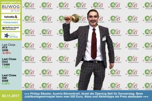 2.11.: Philipp Bässler , Austria Börsenbrief, läutet die Opening Bell für Donnerstag. Beim Jubiläumsgewinnspiel kann man 500 Euro, Abos und Aktientipps als Preis abstauben www.boersenbrief.at ueber-uns gewinnspiel http: www.boerse-social.com goboersewien , www.facebook.com groups GeldanlageNetwork 31.10.: Max Tertinegg , Geschäftsführer der Coinfinity, läutet die Opening Bell für Dienstag. Der Bitcoin-Spezialist aus Graz freut sich aktuell über BTC-Kurse jenseits der 5000 Euro, coinfinity.co http: www.boerse-social.com goboersewien www.facebook.com groups GeldanlageNetwork 30.10.: Alfred Reisenberger und Lukas Stipkovich läuten die Opening Bell für Montag. Am 7.11. werden sie ihren Sigma Alfa European Opportunities Fond... » Weiterlesen