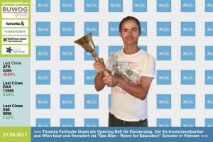 21.9.: Thomas Farthofer läutet die Opening Bell für Donnerstag. Der Ex-Investmentbanker aus Wien baut und finanziert via "Sao Bien - Room for Education" Schulen in Vietnam www.facebook.com saobienroomforeducation www.facebook.com groups GeldanlageNetwork #goboersewien 20.9.: Maximilian Schausberger aus dem Bereich Digital Banking der RBI läutet die Opening Bell für Mittwoch. Zugleich läutet er das Finale von „Elevator Lab“ ein. Heute Abend werden jene 5 Fintechs ausgewählt, die am RBI Accelerator Programm teilnehmen werden http: www.elevator-lab.com www.facebook.com groups GeldanlageNetwork #goboersewien 19.9.: Christian W. Röhl und Sohnemann Julian Röhl läuten die Opening Bell für Dienstag. Der Senior wurde mit http... » Weiterlesen