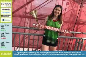 4.8.: Opening Bell für Freitag und die Finalphase der FIVB Beach Volleyball-WM auf der Wiener Donauinsel. Bis Sonntag ist Wien noch die Welthauptstadt des Beachvolleyball www.beachvienna.com www.facebook.com groups Sportsblogged 3.8.: Martina Nemeth-Beran läutet die Opening Bell für Donnerstag. Die Ex-Managerin im Kapitalmarktumfeld (Banken, Zertifikate) ist begeisterte Hobbysportlerin (daher läutet sie im Rahmen der RunInc.-Invitation) und Mutter http: www.runinc.at http: www.runplugged.com www.facebook.com groups Sportsblogged 2.8.: Elisabeth Oberndorfer läutet die Opening Bell für Mittwoch. Die Journalistin, die die Startup-Branche kritisch hinterfragte, wird Chefin vom Dienst Plattform-Managerin bei Quo Vadis Veritas http: www.qvv.at www... » Weiterlesen