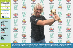 31.7.: Andreas Du-Rieux läutet die Opening Bell für Montag. Der Neo-Schauspieler schreibt gerade ein Buch über das Championsprinizip mit u.a. Lauda, Messner, Muster, Vonn & Dorfmeister. Er läutet im Rahmen der RunInc.-Invitation http: www.runinc.at http: www.runplugged.com www.facebook.com groups Sportsblogged 28.7.: Katharina Schiffl läutet die Opening Bell für Freitag. Die Berufsfotografin ist in den kommenden Tagen bei der Beachvolley-WM auf der Wiener Donauinsel im Dauereinsatz http: www.facebook.com katharinaschiffl www.facebook.com groups Sportsblogged 27.7.: Robert Ulm läutet die Opening Bell für Donnerstag. Der Österreich-Verantwortliche beim Online-Broker flatex bietet aktuell z.B. Freitrades bei der Eröffnung n... » Weiterlesen