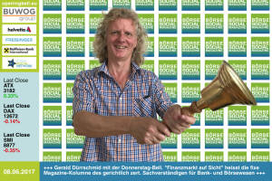 9.6.: Georg Panholzer läutet die Opening Bell für Freitag. Der Ansprechpartner für die Finanzwelt und CSO der Verlagsgruppe News freut sich auf einen starken Kapitalmarktsommer www.facebook.com groups GeldanlageNetwork 8.6.: Gerald Dürrschmid läutet die Opening Bell für Donnerstag. "Finanzmarkt auf Sicht" heisst die fixe Magazine-Kolumne des gerichtlich zertifizierten Sachverständigen für Bank- und Börsewesen und Buchautors http: www.boerse-social.com magazine www.facebook.com groups GeldanlageNetwork 7.6.: Martin Foussek und Thomas Niss läuten die Opening Bell für Mittwoch. Mit ihrem Own Austria Standortfonds beteiligt man sich an 250 Börsenotierten mit Österreich-Bezug www.ownaustria.at www.facebook.com groups Ge... » Weiterlesen
