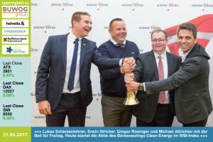 21.4.: Lukas Scherzenlehner, Erwin Stricker , Gregor Rosinger und Michael Altrichter mit der Opening Bell für Freitag. Heute startet die Aktie des Börseneulings Cleen Energy im WBI-Index der Wiener Börse http: www.cleen-energy.com www.facebook.com groups GeldanlageNetwork 20.4.: Evo Fitness Austria eröffnete gestern Mittwoch in der Berggasse in 1090 Wien und läutet für heute Donnerstag die Opening Bell: v.li. Stephanie Falch (Marketing), Shawsta Young Leopold (Leiterin) und die Trainer innen Lisa Wartinger und Adrian Devarell evofitness.at evo-vienna-berggasse www.facebook.com groups Sportsblogged 19.4.: Bettina Schragl mit der Opening Bell für Mittwoch. Die Immofinanz-Konzernsprecherin läutet mit ihrer IR-App auch den Kapitalmarkts... » Weiterlesen