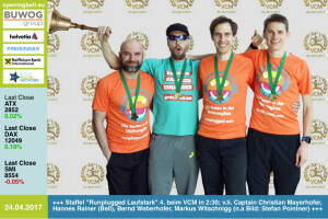 24.4.: Unsere Staffel "Runplugged Laufstark" wurde gestern 4. beim VCM 2017 in 2:30 Stunden; v.li. Captain Christian Mayerhofer, Hannes Rainer (der mit der Bell), Bernd Weberhofer, Markus Witschnigg (nicht am Bild: Stefan Pointner ). Herzliche Gratulation. http: www.runplugged.com www.xmarkets.db.com DE showpage.aspx?pageID=635 www.facebook.com groups GeldanlageNetwork 21.4.: Lukas Scherzenlehner, Erwin Stricker , Gregor Rosinger und Michael Altrichter mit der Opening Bell für Freitag. Heute startet die Aktie des Börseneulings Cleen Energy im WBI-Index der Wiener Börse http: www.cleen-energy.com www.facebook.com groups GeldanlageNetwork 20.4.: Evo Fitness Austria eröffnete gestern Mittwoch in der Berggasse in 1090 Wien und läutet für h... » Weiterlesen