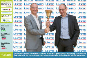 11.4.: Harald Gutschi und Achim Güllmann läuten die Opening Bell für Dienstag. 2017 war ein Rekordjahr für die Unito-Gruppe: Der grösste heimische Online-Händler wächst weiter http: www.unito.at www.facebook.com groups GeldanlageNetwork 10.4.: Anton Graf , Jessica Kotroba und Hannes Roither mit der Opening Bell für Montag. Palfinger war am Weekend auf der Invest in Stuttgart und ist dort mit 18 Teilnahmen in 18 Jahren Rekordhalter http: www.palfinger.com www.facebook.com groups GeldanlageNetwork 7.4.: Milena Ioveva läutet die Opening Bell für Freitag. 2016 war das zweitbeste Jahr in der 144-jährigen Geschichte von Immobilienentwickler UBM, mehr dazu unter http: www.ubm.eu de news-presse alle-news 6.4.: Christian... » Weiterlesen
