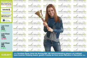 15.3.: Valerie Heller mit der Opening Bell für Mittwoch. Die Marketingchefin der Hello bank Österreich setzt auf den zügigen Ausbau der Hello Akademie (diese Woche Charttechnik-Seminar) www.hellobank.at c wissen akademie webinare.aspx www.facebook.com groups GeldanlageNetwork 14.3.: Heinrich Schaller mit der Opening Bell für Dienstag. Der RLB OÖ-Generaldirektor und Ex-Chef der Wiener Börse ist neuer Honorarkonsul der Tschechischen Republik in Oberösterreich http: www.rlbooe.at www.facebook.com groups GeldanlageNetwork 13.3.: Dorothee Bauer läutet die Opening Bell für Montag. Mit Deliciouswedding gewann sie unlängst beim Austrian Wedding Award, gestern finishte sie ihren ersten Marathon in Barcelona http: www.deliciouswedding.at ... » Weiterlesen