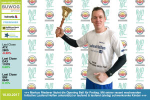 Laufend Helfen Founder Markus Riederer mit der Opening Bell für Freitag