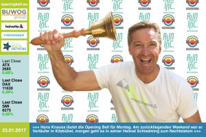 24.1.: Helmut Maier, Geschäftsführer Sick Österreich, läutet die Opening Bell für Dienstag. Mit Sick Appspace hat er eine offene Plattform für Lösungen mit programmierbaren Sensoren von Sick am Start http: www.sick.at www.facebook.com groups GeldanlageNetwork 23.1.: Hans Knauss läutet die Opening Bell für Montag. Am zurückliegenden Weekend war der Ex-Skistar Vorläufer in Kitzbühel, morgen geht es in seiner Heimat Schladming zum Nachtslalom http: www.hans-knauss.com -Runinc-Invitation also nicht nur für Läufer, sondern auch für Vorläufer. http: www.runinc.at http: www.runplugged.com www.facebook.com groups Sportsblogged 20.1.: Monika Kalbacher mit der Opening Bell für Freitag. Die Flugbegleiterin l&au... » Weiterlesen