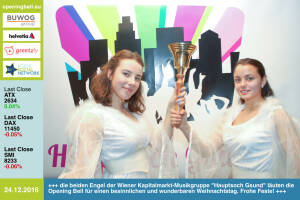 Zwei Hauptsoch Gsund Engel mit der Opening Bell für Weihnachten