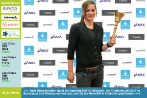 29.12.: Andreas Onea mit der Opening Bell für Donnerstag. Der Paralympics-Bronzene in den Schwimmbewerben von Rio glänzte am Heiligen Abend als Moderator von "Licht ins Dunkel" http: www.andreasonea.at http: lichtinsdunkel.orf.at http: www.sporthilfe.at www.facebook.com groups Sportsblogged 28.12.: Tanja Stroschneider läutet die Opening Bell für Mittwoch. Die Triathletin will 2017 in Europacup und Weltcup starten bzw. sich für die Heim-EM in Kitzbühel qualifizieren http: photaq.com search stroschneider www.facebook.com groups Sportsblogged 27.12.: Paul Severin läutet die Opening Bell für Dienstag. Der Communications & PR-Manager der Erste Asset Management liefert in seinen Blogs u.a. regelmässig das Rendite-Radar. Beispiel Dez... » Weiterlesen