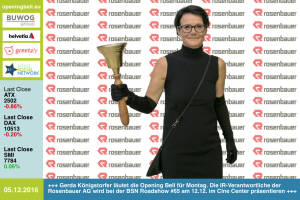 5.12.: Gerda Königstorfer läutet die Opening Bell für Montag. Die IR-Verantwortliche der Rosenbauer AG wird bei der BSN Roadshow #65 am 12.12. im Cine Center präsentieren http: www.rosenbauer.com http: www.boerse-social.com roadshow 2.12.: Rupert-Heinrich Staller läutet die Opening Bell für Freitag im Rahmen der UBM-Invitation für Privatanleger. Staller gilt als Top-Experte für Österreichs Aktienmarkt http: www.openingbell.eu http: www.ubm.at www.facebook.com groups GeldanlageNetwork 1.12.: Petra Augustyn läutet die Opening Bell für Donnerstag. Die ktschng-Gründerin und Augmented Reality Expertin hat ein Konzept zur Rettung des Herzerlbaums am Rathausplatz parat www.facebook.com Rettet-den-Herzerlbaum-1754086048249602 ... » Weiterlesen