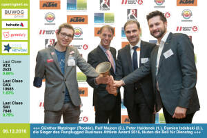 Die Sieger des Business Athlete Award 2016 läuten die Opening Bell für Dienstag