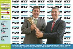 W.E.B läutet mit der Opening Bell für Dienstag auch das "Green Power Anleihen"-Tri...
