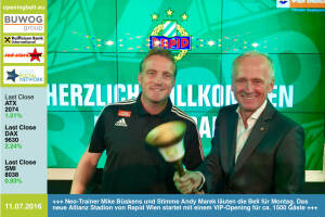 11.7.: Neo-Trainer Mike Büskens und Stimme Andy Marek läuten die Opening Bell für Montag. Das neue Allianz Stadion von Rapid Wien startet mit einem VIP-Opening für ca. 1500 Gäste - Bilder hier http: www.photaq.com page index 2618 http: www.skrapid.at 8.7. : Katharina Braun läutet die Opening Bell für Freitag. Die Rechtsanwältin (u.a. Scheidungen) mit Medien Know-How (ORF, DiePresse) schätzt den Aktien- wie auch den Beziehungsmarkt volatil ein http: www.rechtsanwaeltin-braun.at 7.7: Michael Berl läutet die Opening Bell für Donnerstag. Das Fachmagazin "DerBörsianer" bringt News und die Onlineplattform "DerBörsianer.com" Insides für die Finanzbranche http: www.derboersianer.com 6.7: Holger Lüth läute... » Weiterlesen