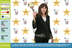 30.5: Wiener Börse Vorstand Birgit Kuras läutet die Opening Bell für Montag anlässlich ihrer Aufnahme in die Class of 2016 der Hall of Fame des österreichischen Kapitalmarkts http: www.boerse-social.com hall-of-fame 27.5: Wiener Börse Vorstand Michael Buhl läutet die Opening Bell für Freitag anlässlich seiner Aufnahme in die Hall of Fame, Class of 2016, des österreichischen Kapitalmarkts http: www.boerse-social.com hall-of-fame 25.5: Bank Austria CEO Robert Zadrazil läutet die Opening Bell für Mittwoch anlässlich der Aufnahme der Bank in die Hall of Fame des österreichischen Kapitalmarkts. BA-CA II istder historisch grösste Pluspunktebringer im ATX http: www.boerse-social.com hall-of-fame 24.5: Heidi Schul... » Weiterlesen