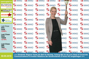 Elisabeth Wagerer, die neue S-Immo-Kommunikations/IR-Chefin, läutet die Opening Be...