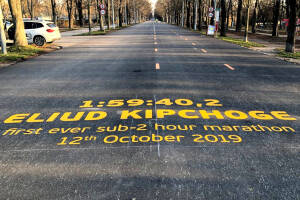 Erinnerung an den legendären ersten Marathon unter zwei Stunden von Eliud Kipchoge Wien hat seit 4. Dezember ein neues Wahrzeichen für Läufer. Genau an jener Stelle, wo Eliud Kipchoge seinen legendären 1:59:40,2-Marathon beendet hat, wurde über die ganze Breite der Prater Hauptallee ein Schriftzug angebracht. In oranger Farbe ist zu lesen „first ever sub-2 hour marathon“ sowie die Zeit, der Name des Läufers und der Tag des Laufes am 12. Oktober 2019. In Abstimmung mit der Bezirksvorstehung Leopoldstadt wurden dazu die Logos des Vienna City Marathon, der als lokaler Veranstalter die INEOS 1:59 Challenge organisiert hat, und von Sport Wien aufgesprüht. Damit gibt es im „Home of 1:59“ eine erste sichtbare und bleibende Erinnerung an den histori... » Weiterlesen