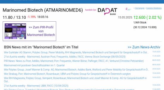 Marinomed Biotech am 15.5. 2,02%, Volumen 164% normaler Tage