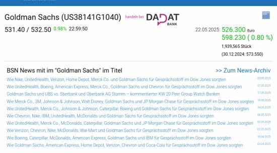 Goldman Sachs am 22.5. 0,80%, Volumen 68% normaler Tage
