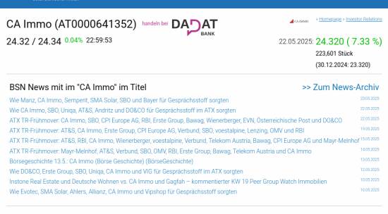 CA Immo am 22.5. 7,33%, Volumen 247% normaler Tage