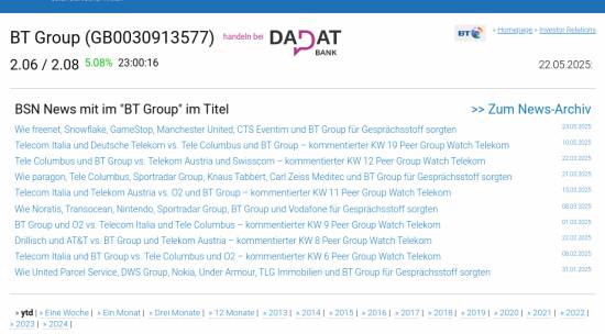 BT Group am 22.5. 4,57%, Volumen 0% normaler Tage