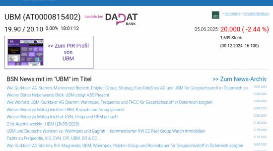 UBM am 5.6. -2,44%, Volumen 50% normaler Tage