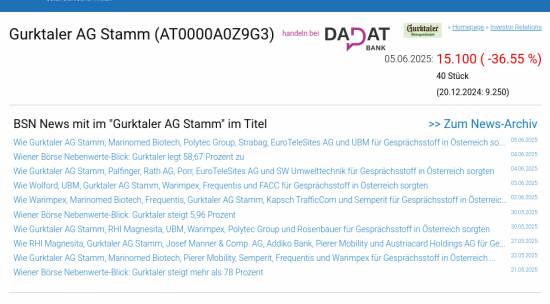 Gurktaler AG Stamm am 5.6. -36,55%, Volumen 33% normaler Tage