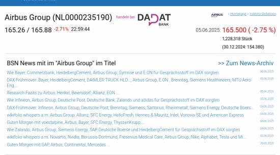 Airbus Group am 5.6. -2,75%, Volumen 93% normaler Tage