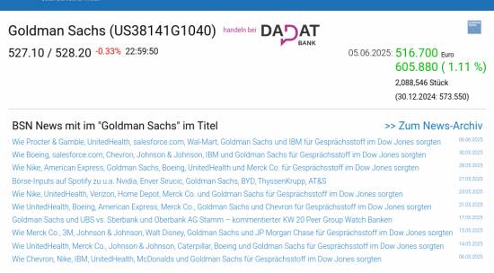 Goldman Sachs am 5.6. 1,11%, Volumen 75% normaler Tage