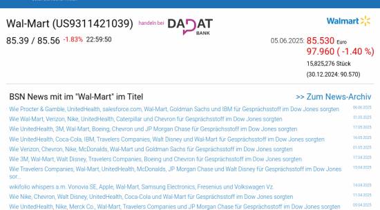 Wal-Mart am 5.6. -1,40%, Volumen 77% normaler Tage