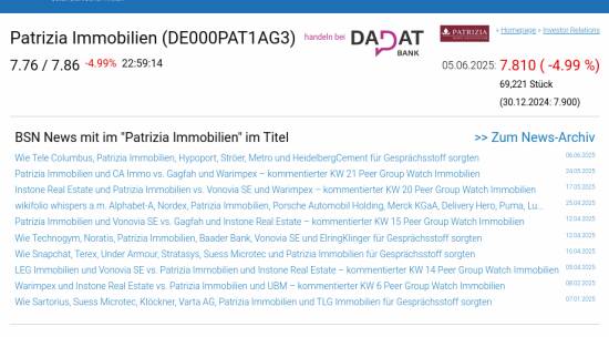 Patrizia Immobilien am 5.6. -4,99%, Volumen 95% normaler Tage