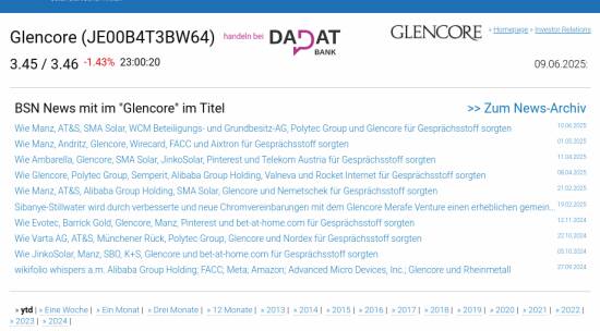 Glencore am 9.6. -2,13%, Volumen 0% normaler Tage