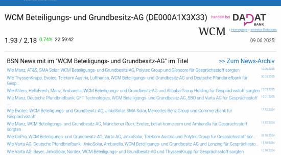 WCM Beteiligungs- und Grundbesitz-AG am 9.6. -3,12%, Volumen 0% normaler Tage