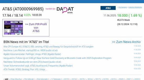 AT&S am 11.6. 1,69%, Volumen 36% normaler Tage