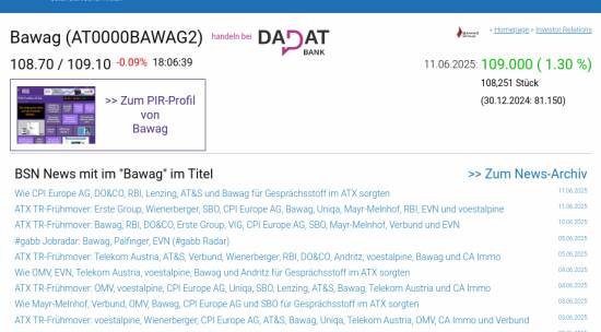 Bawag am 11.6. 1,30%, Volumen 74% normaler Tage