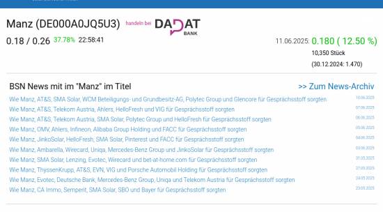 Manz am 11.6. 12,50%, Volumen 55% normaler Tage