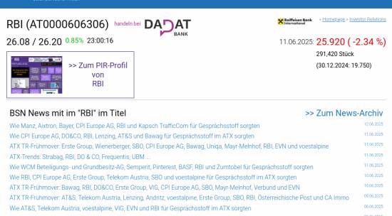 RBI am 11.6. -2,34%, Volumen 65% normaler Tage