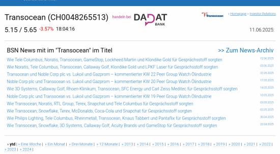 Transocean am 11.6. 7,20%, Volumen 0% normaler Tage