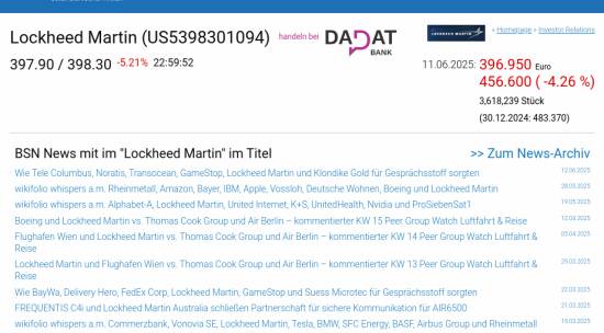 Lockheed Martin am 11.6. -4,26%, Volumen 230% normaler Tage