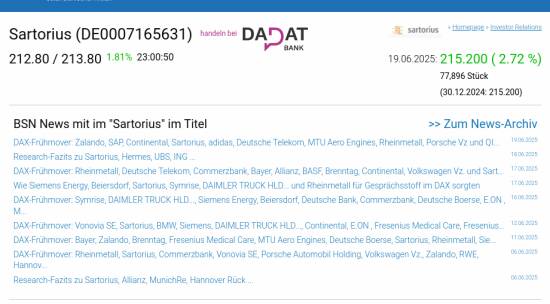 Sartorius am 19.6. 2,72%, Volumen 70% normaler Tage