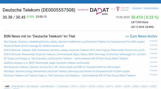 Deutsche Telekom am 19.6. 0,23%, Volumen 48% normaler Tage