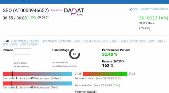 >> Aus dem Artikel: ATX TR-Frühmover: AT&S, SBO, Palfinger, Andritz, Wienerberger, Österreichische Post, Lenzing, Erste Group, OMV und EVN