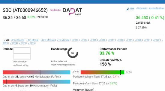 >> Aus dem Artikel: ATX TR-Frühmover: Österreichische Post, AT&S, DO&CO, Lenzing, voestalpine, OMV, EVN, RBI, VIG und SBO