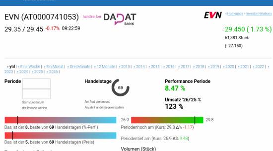 >> Aus dem Artikel: ATX TR-Frühmover: Österreichische Post, AT&S, DO&CO, Lenzing, voestalpine, OMV, EVN, RBI, VIG und SBO