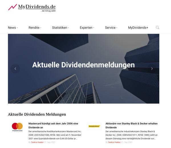 MyDividends widmet sich ausschließlich dem Thema Dividenden, unter dem Motto „der Ertrag zählt“. In Studien konnte nachgewiesen werden, dass ein Großteil der langfristigen Performance einer Aktie von der Dividende stammt. Welche Unternehmen erhöhen oder kürzen die Dividende und wer leistet erstmals eine Ausschüttung? Dies sind börsenrelevante Nachrichten, über die wir täglich berichten.