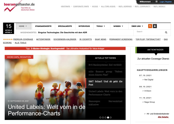Profitieren Sie von fundiert geschriebenen Artikeln mit konkreten Handlungsratschlägen, Hintergrundinformationen sowie einer penibel gepflegten Datenbank für die eigene Aktienanalyse. Und – keine Sorge – natürlich erfahren Sie hier auch, über welche heimischen Blue Chips und Nebenwerte gerade getuschelt wird. Börseninformationen müssen nämlich keineswegs trockener Stoff sein.