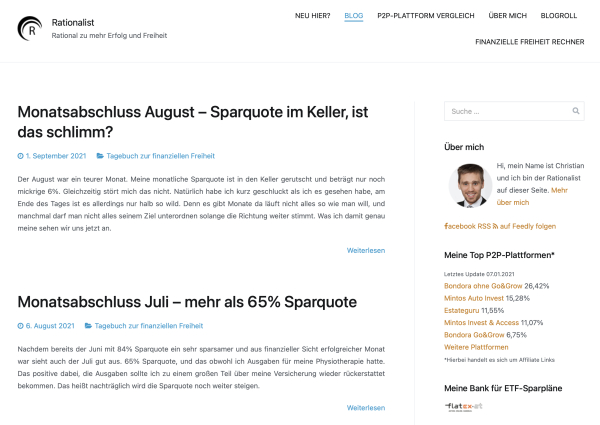 Hi, mein Name ist Christian, ich bin 28 Jahre alt und ich bin der Rationalist auf dieser Seite. Hier schreibe ich über alles rund um das Thema der finanziellen Freiheit und meinen Weg zur finanziellen Freiheit bis 35.