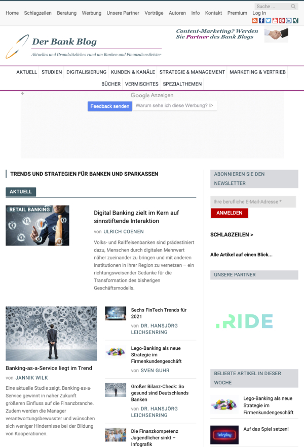 Blogs sind ein zeitgemäßes Kommunikationsinstrument. Sie dienen dem Austausch von Informationen, Gedanken und Erfahrungen als auch der Kommunikation. Insofern ist ein Bank-Blog ein idealer Ansatz, sich mit anderen schnell und unkompliziert zu aktuellen Themen rund ums Bankgeschäft auszutauschen.