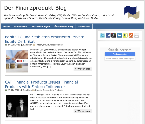 Der Branchenblog für Strukturierte Produkte, ETF, Fonds, CFDs und andere Finanzprodukte mit speziellem Fokus auf Fintech, Trends, Monitoring, Vermarktung und Social Media.